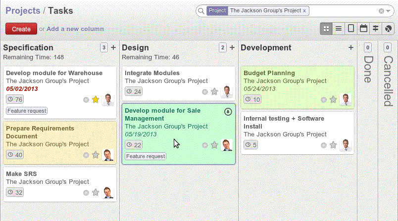 Planen Sie Projekte mit Blick auf Ihre eigenen Prozesse. Mit Hilfe der Kanban-Karten können Sie Ihre Aufgaben und Probleme bearbeiten, Aufgaben mit der Gantt-Ansicht planen und Fristen mit der Kalenderansicht im Auge behalten. Jedes Projekt kann in Stufen unterteilt werden, die Projektteams sind so in der Lage, ihren Arbeitsablauf zu optimieren.