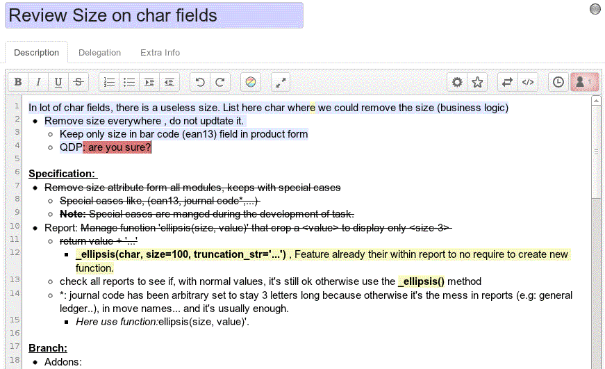 Diese Vorgehensweise ist besonders für Scrum-Meetings, Sitzungsprotokolle oder komplexe Beschreibungen geeignet. Jeder Nutzer hat seine eigene Farbe und der gesamte Aufbau des Dokuments kann bei einem Austausch zurückverfolgt werden.